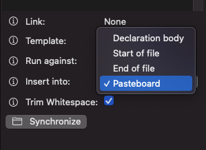 Right now we don’t have a way to communicate what’s going on to the user when you do something non-standard, e.g. if you don’t touch the text buffer but instead generate code straight into pasteboard for the user