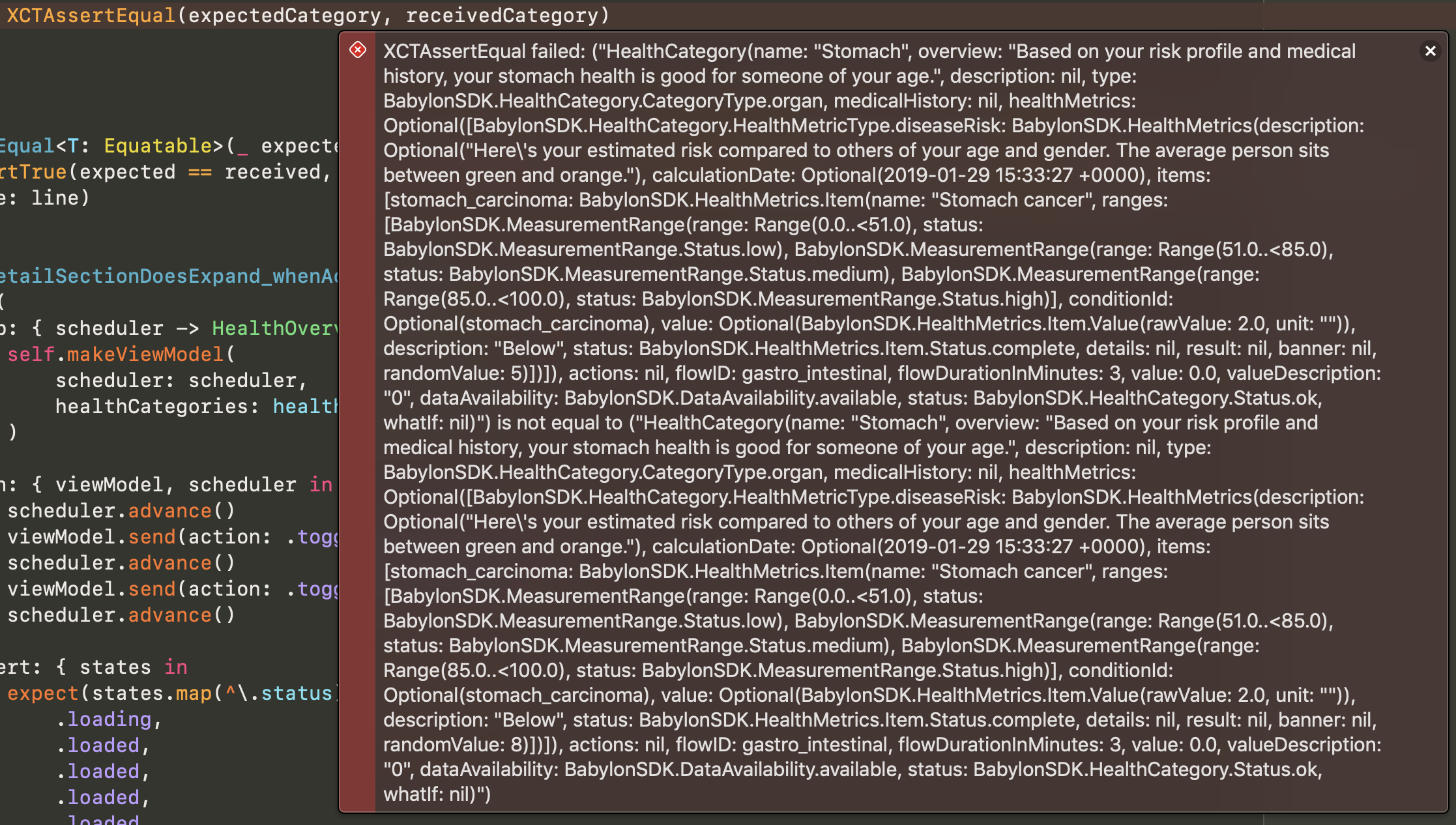 Have you ever written tests? Usually, they use equality asserts, e.g. XCTAssertEqual, what happens if the object isn’t equal? Xcode throws a wall of text at you: